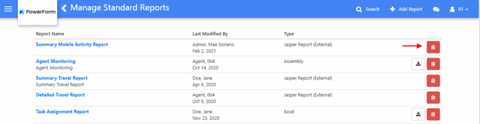 2. Click the ‘Delete’ button of the report record to be deleted.