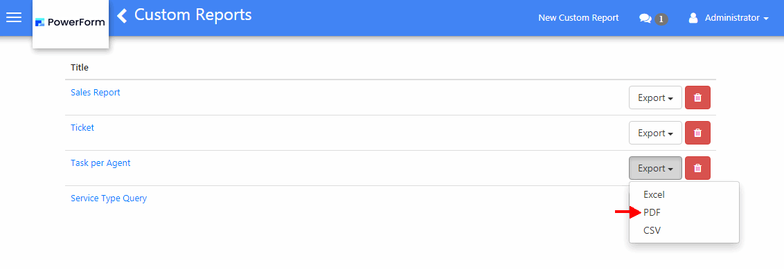 Users can generate a PDF file of a saved custom report that will be displayed in separate tab. Exported files follow the file naming format: <custom-report>-<custom-report>-<yyyymmdd>-hhmm.pdf (e.g., custom-report-20200807-0913.pdf).