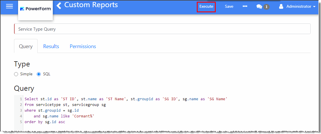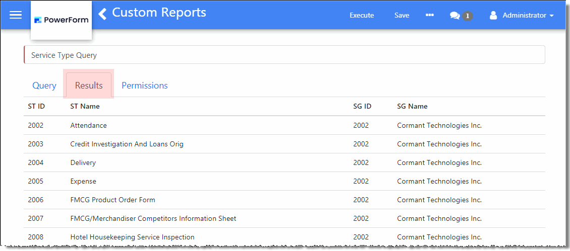 If there are no errors in the SQL statement, results will be displayed in the Results tab.